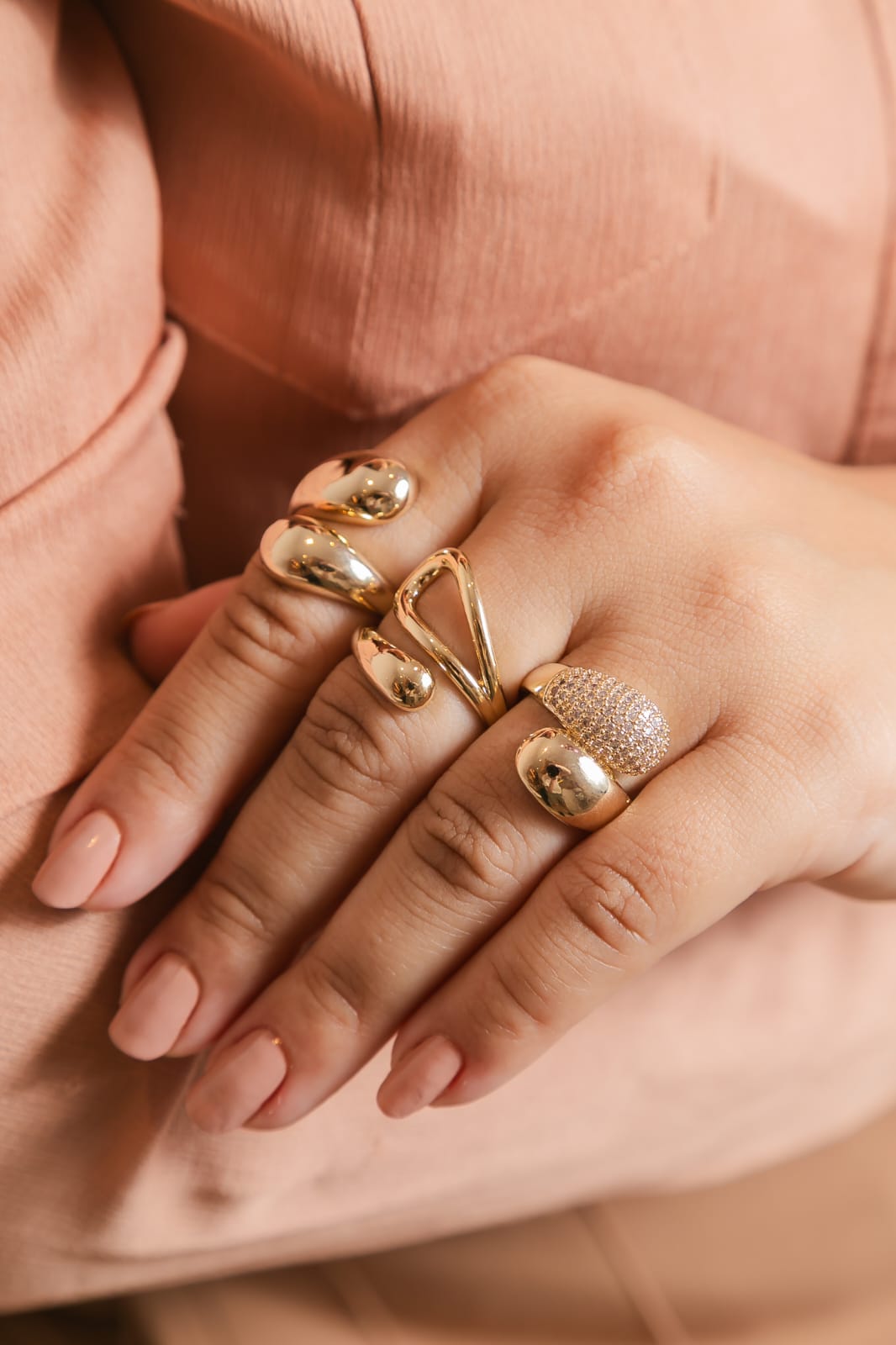 O Anel Duas Gotas traz um visual moderno e atemporal, com duas gotas em harmonia — uma delas levemente vazada, que adiciona um toque de delicadeza e exclusividade ao modelo.