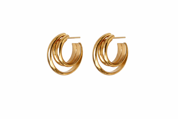 Seu design contemporâneo com três fios paralelos cria profundidade e dimensão, valorizando o contorno do rosto com elegância. A estrutura harmoniosa traz equilíbrio entre impacto e delicadeza, tornando a argola tripla perfeita para uso diário ou ocasiões especiais.
