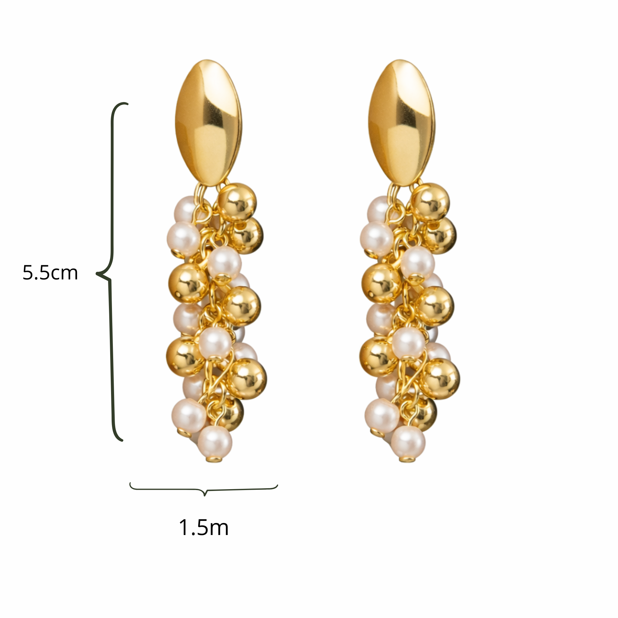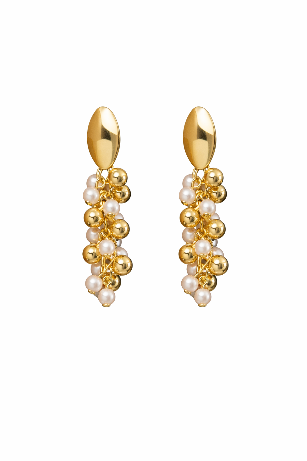 Com um design harmonioso, o brinco mescla bolas polidas e pérolas, resultando em um visual contemporâneo, feminino e cheio de personalidade.