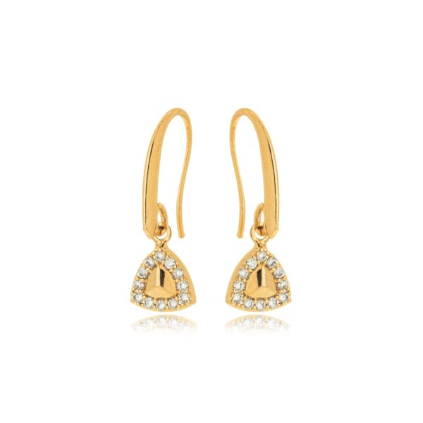 Com um design moderno e elegante, o Brinco Triangular com Zircônias é perfeito para quem busca uma semijoia diferenciada. O formato triangular confere sofisticação contemporânea, enquanto as zircônias trazem luminosidade na medida certa. Banhado a Ouro 18k, é uma peça leve, confortável e ideal para compor looks elegantes com um toque atual.