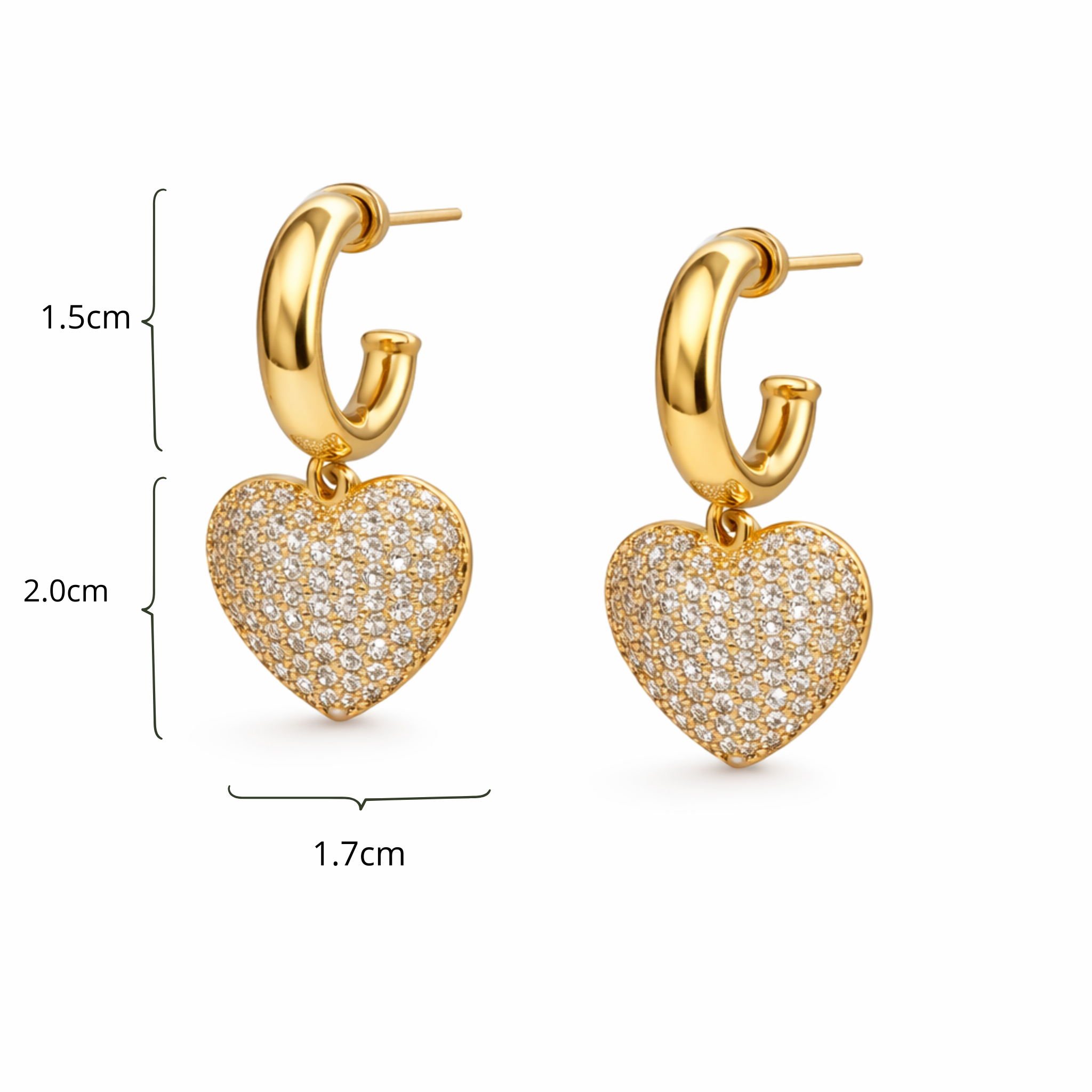 Com design luxuoso e acabamento minucioso, o coração cravejado se destaca pela riqueza de detalhes e pela imponência da peça. O brilho das cravações reflete a luz de forma sofisticada, criando um efeito elegante e envolvente que valoriza o rosto e eleva qualquer look.