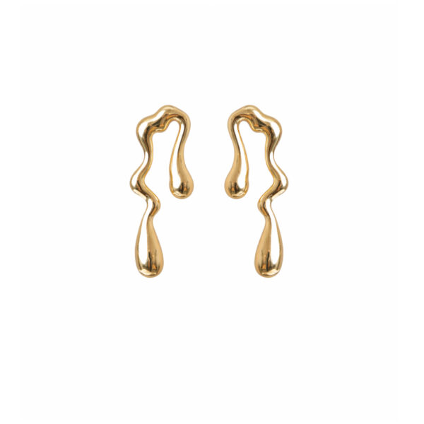 Desenho orgânico com linhas fluidas e formas irregulares que remetem a gotas em queda, com acabamento polido e visual moderno, elegante e natural.