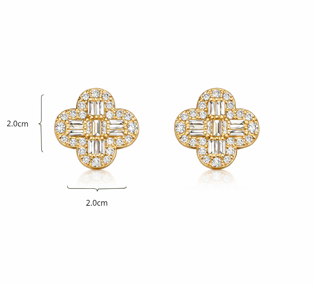 O design combina o romantismo do trevo com a modernidade das zircônias em formato baguete, criando linhas mais estruturadas e elegantes. O efeito visual é luxuoso e contemporâneo, perfeito para elevar produções do dia a dia ou complementar looks especiais com muito charme.