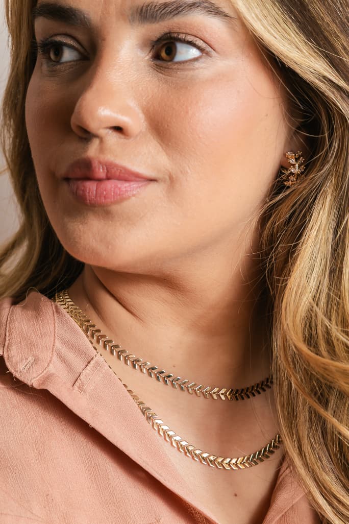 A Choker Folhinhas é uma peça que traduz leveza e elegância em cada detalhe. Seu design exclusivo remete a pequenas folhinhas alinhadas. Banhada a ouro 18k, essa semijoia combina perfeitamente com diferentes estilos e pode ser usada sozinha, ou em composições modernas com outros colares. Um clássico atemporal para mulheres que valorizam charme e delicadeza em cada acessório.