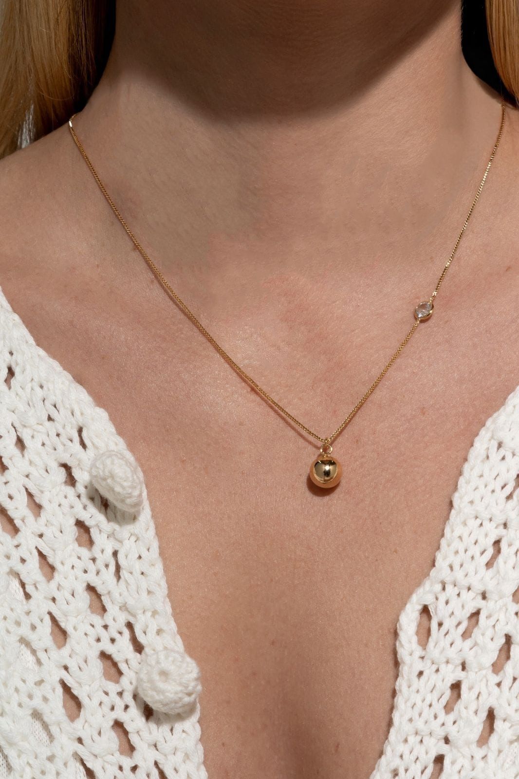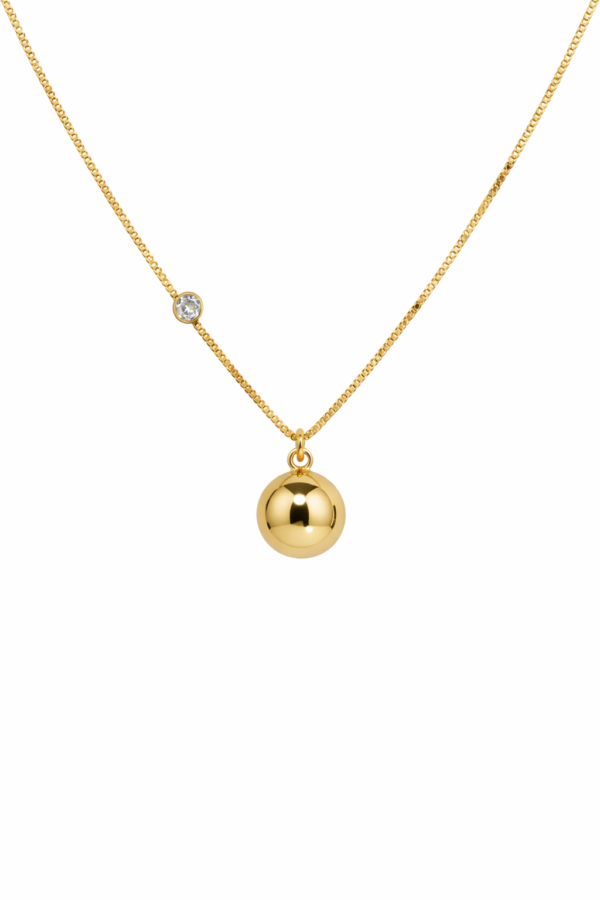Com design contemporâneo e acabamento minucioso, a peça une dois elementos clássicos — a esfera e o ponto de luz — em perfeita sintonia. O ponto de luz fixo valoriza o colo de forma elegante, enquanto a esfera finaliza o visual com suavidade e equilíbrio.