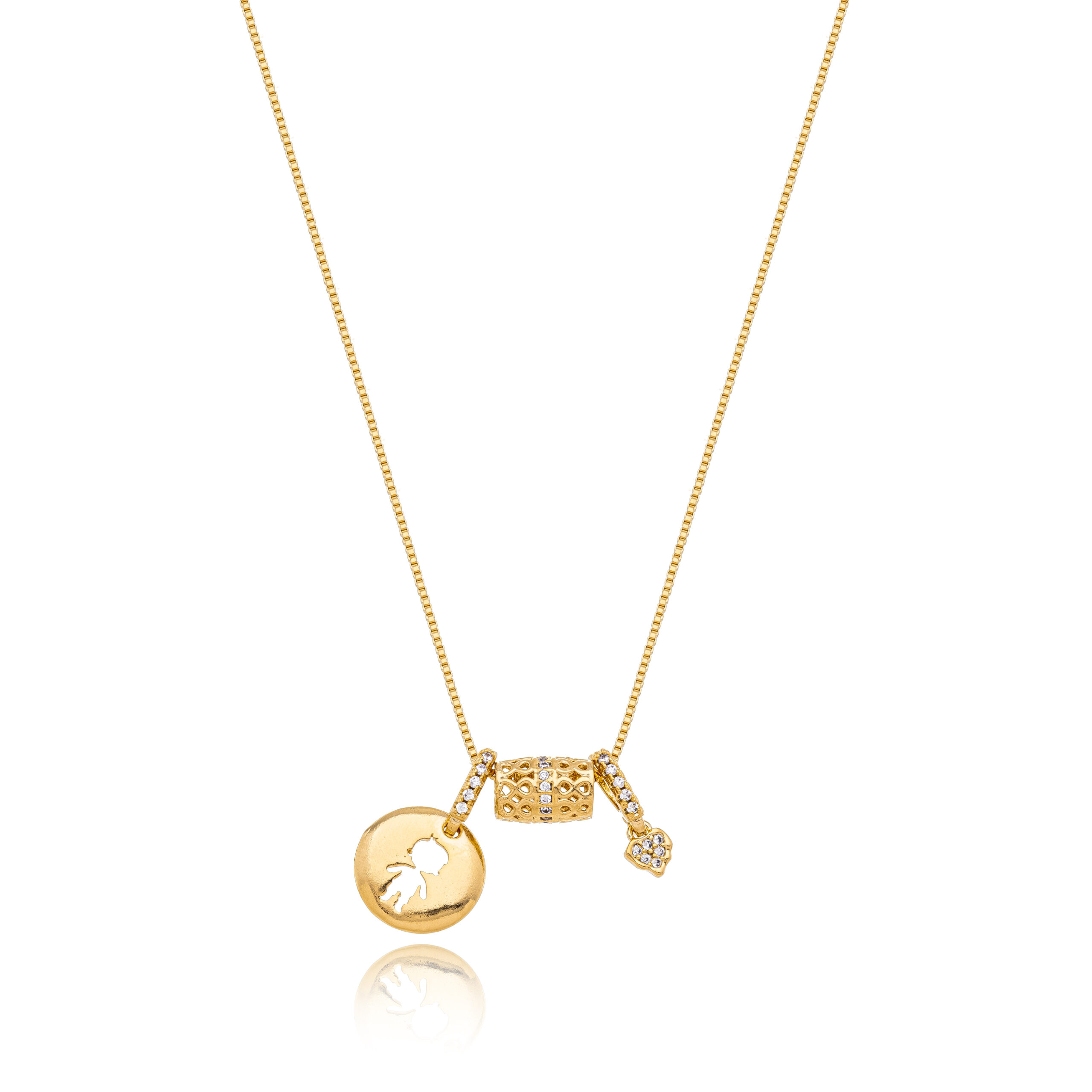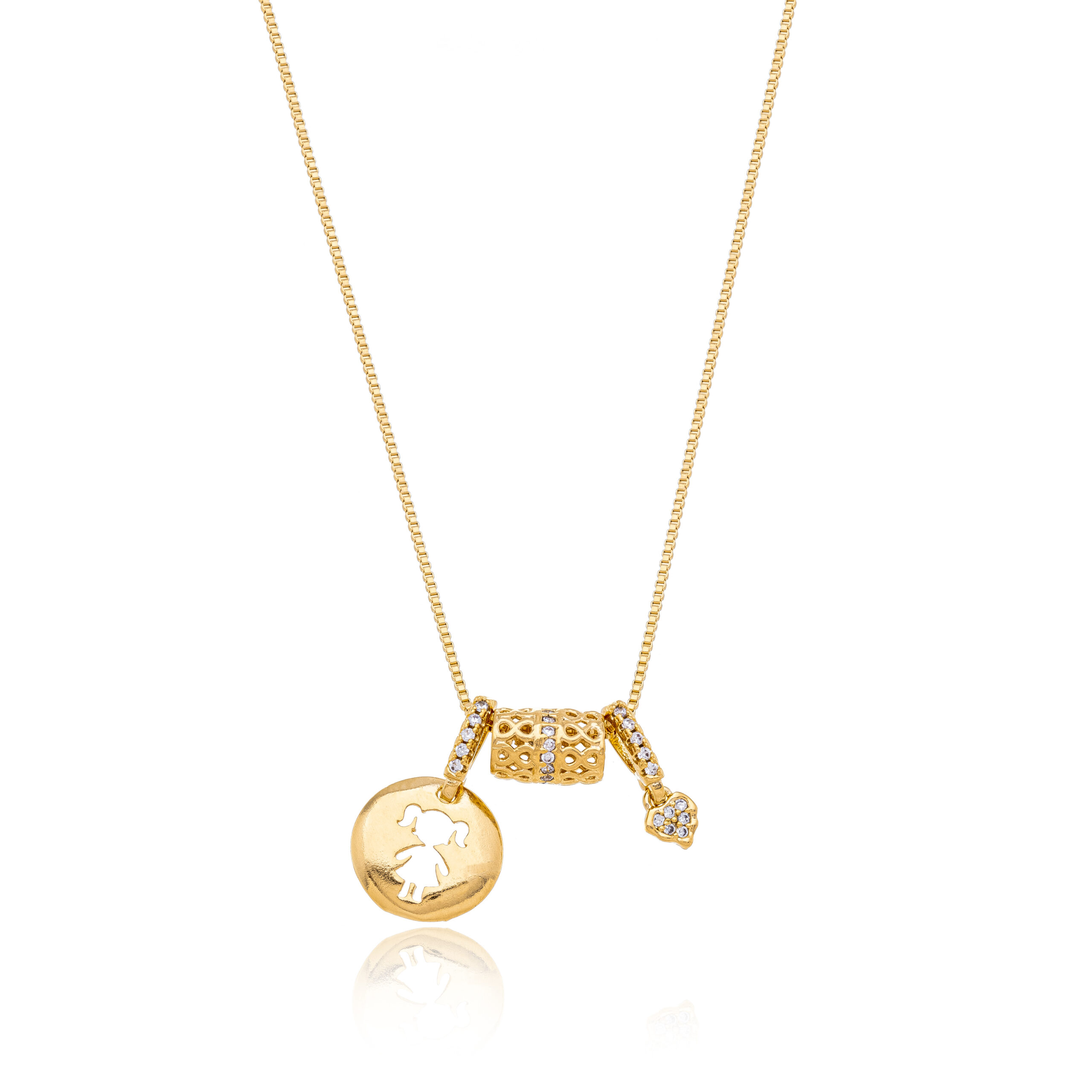 Banhado a ouro 18k, o colar possui acabamento refinado e brilho sofisticado, sendo ideal para quem deseja carregar consigo um símbolo elegante e afetivo no dia a dia.
