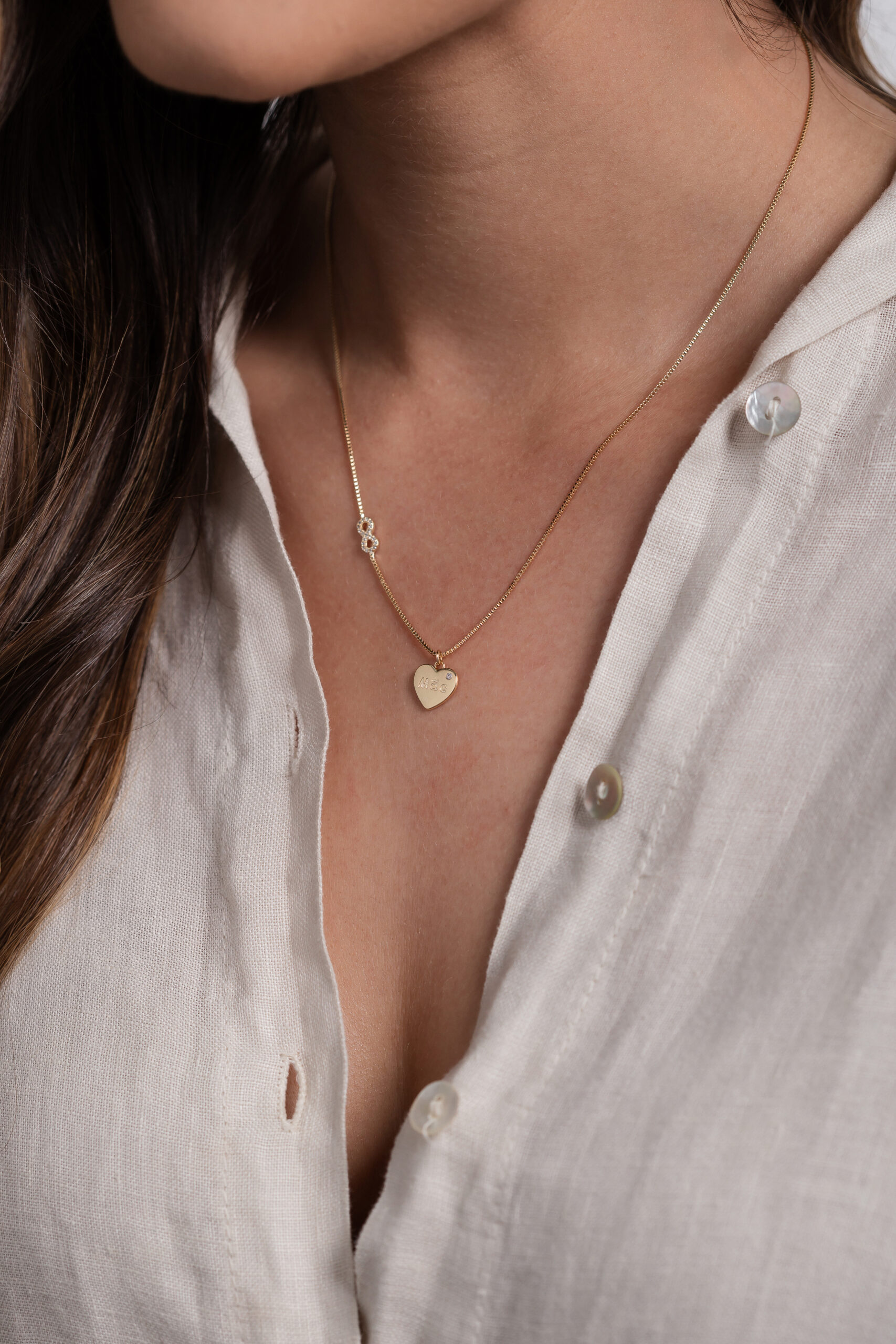 O design minimalista combina perfeitamente o símbolo do infinito com o coração, criando uma composição equilibrada, discreta e extremamente sofisticada. A corrente fina valoriza o colo com delicadeza, tornando a peça versátil para qualquer ocasião.