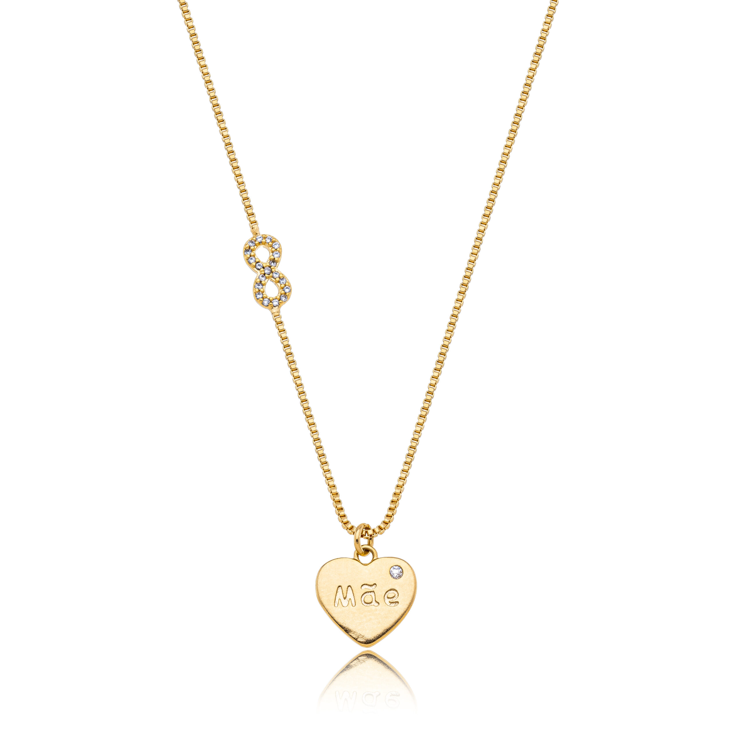 O Colar Mãe & Infinito é uma joia sutil e cheia de significado, criada para representar o amor eterno entre mãe e filho(a). Com um delicado símbolo do infinito na corrente e um pingente em formato de coração com a palavra “mãe”, a peça traduz um sentimento que é infinito em essência.