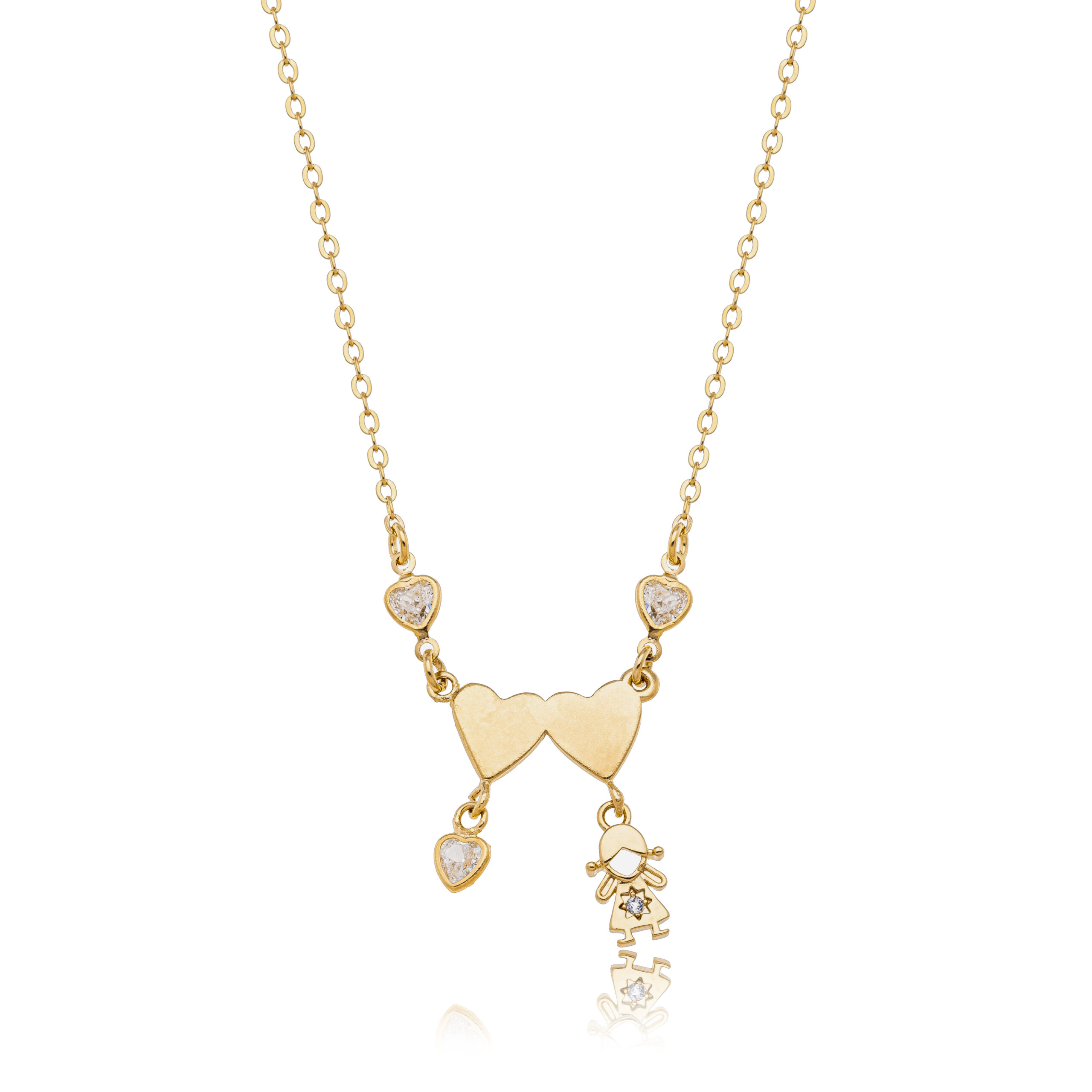 O design combina a delicadeza dos corações com o movimento suave dos pingentes de filhos, criando uma composição leve, feminina e cheia de significado. Os pontos de brilho ao redor trazem sofisticação na medida certa, tornando a peça ainda mais especial.