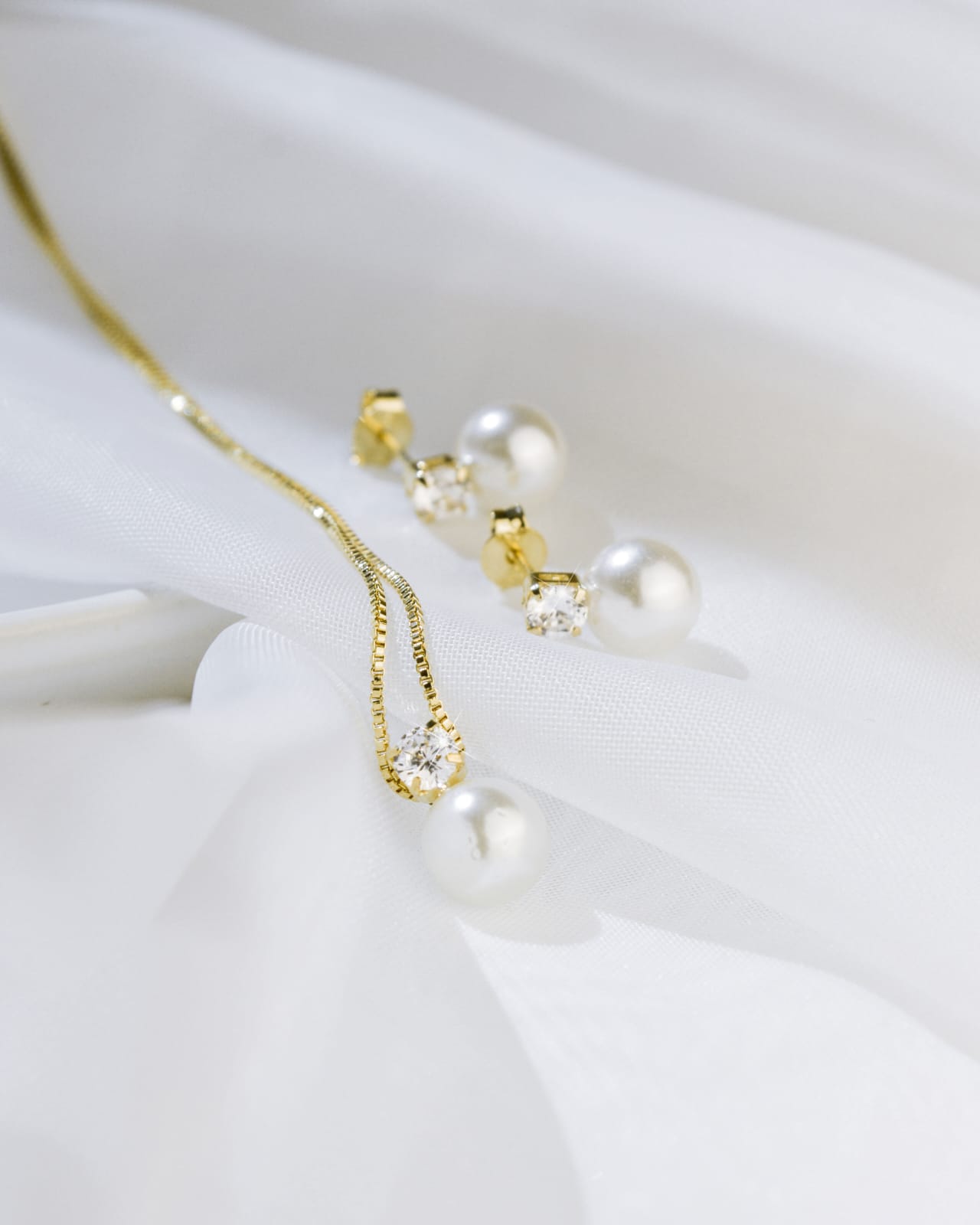 Design elegante que une a suavidade da pérola com o brilho sutil da zircônia. Cada elemento foi cuidadosamente posicionado para criar um equilíbrio visual encantador, traduzindo leveza e romantismo em uma joia de acabamento impecável.
