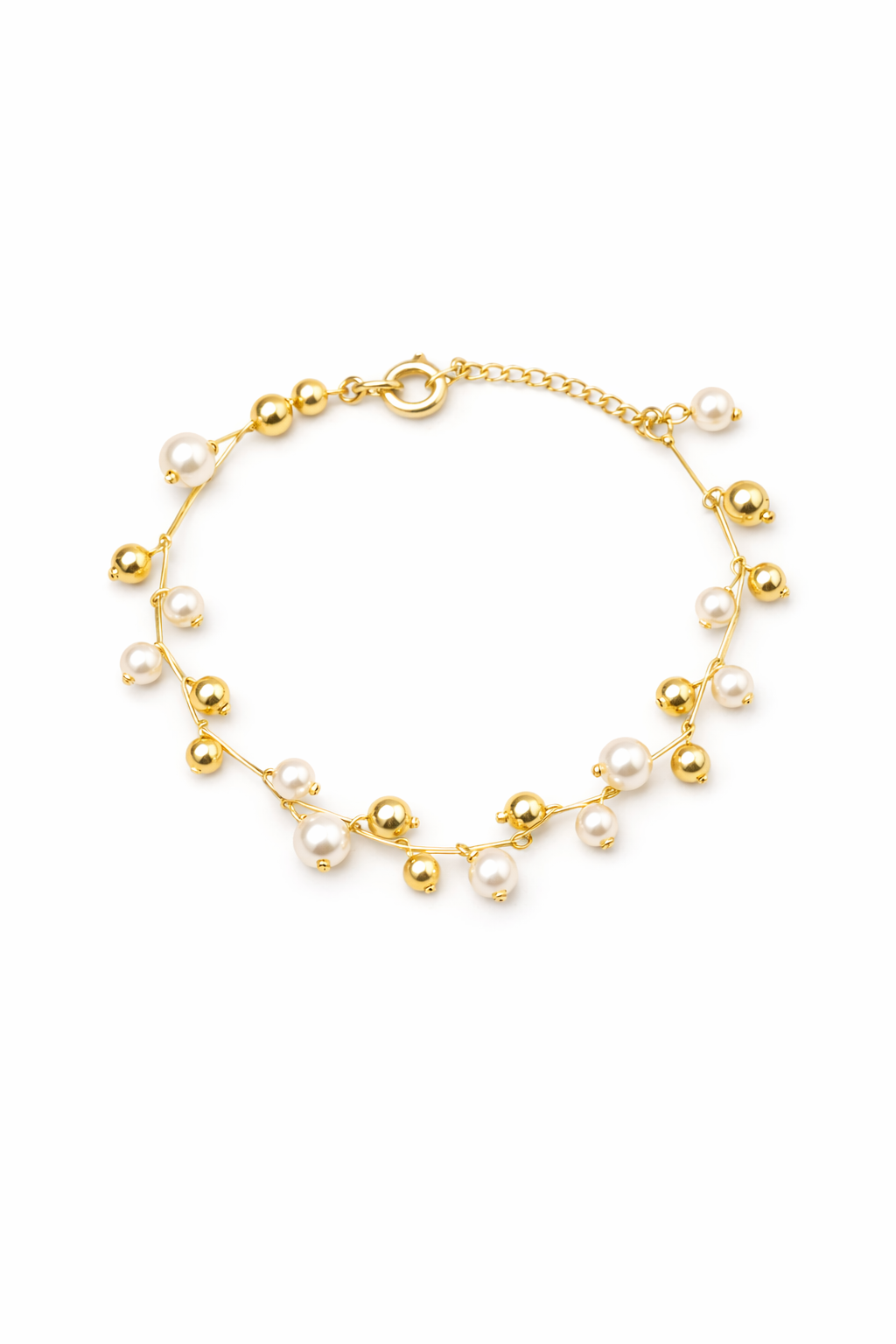 Com um design harmonioso, a pulseira intercala bolinhas e pérolas de forma delicada, proporcionando movimento, brilho suave e um acabamento refinado. Banhada a Ouro 18k, a peça apresenta um visual atemporal que transita facilmente entre o clássico e o moderno.