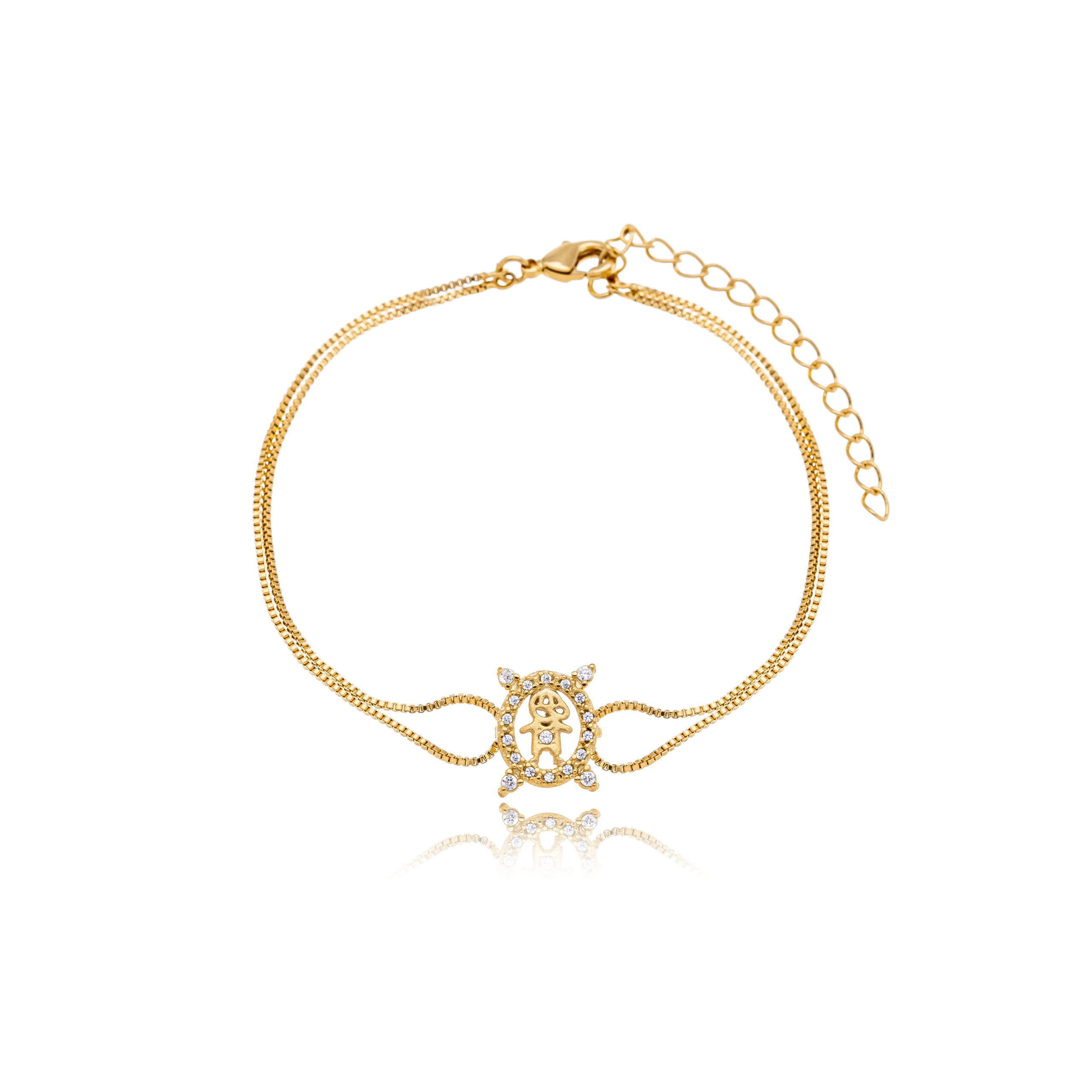 A Pulseira Filho(a) Cravejada é uma Semijoia delicada e cheia de significado, perfeita para representar o amor único entre mãe e filho(a). Com design sofisticado, a peça traz um pingente com silhueta de menino ou menina, contornado por detalhes cravejados que adicionam brilho e elegância.